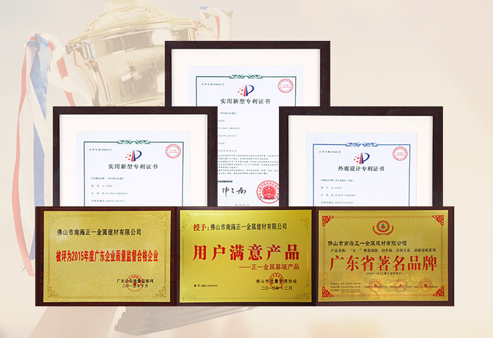 通過ISO9001認(rèn)證,國家建筑材料測試中心和中國有色金屬華南產(chǎn)品質(zhì)量監(jiān)督檢驗中心合格檢測,符合美國建筑制造商協(xié)會AAMA2605-98涂層標(biāo)準(zhǔn),被國家建設(shè)部認(rèn)定為建筑鋁合金外墻板、鋁合金天花板定點(diǎn)生產(chǎn)企業(yè)。